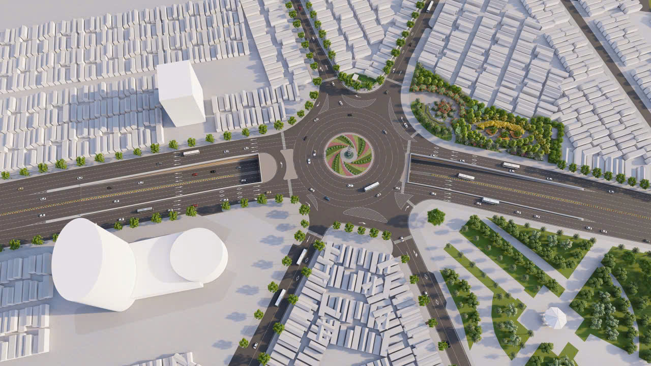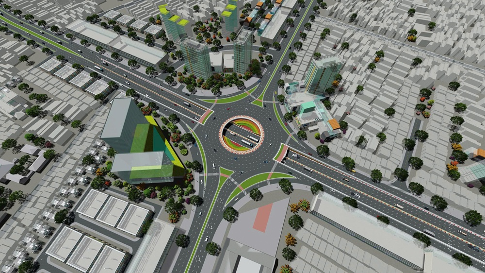 Phối cảnh nút giao khác mức tại ngã 6 giữa đường Nguyễn Trãi – Lê Hồng Phong.
